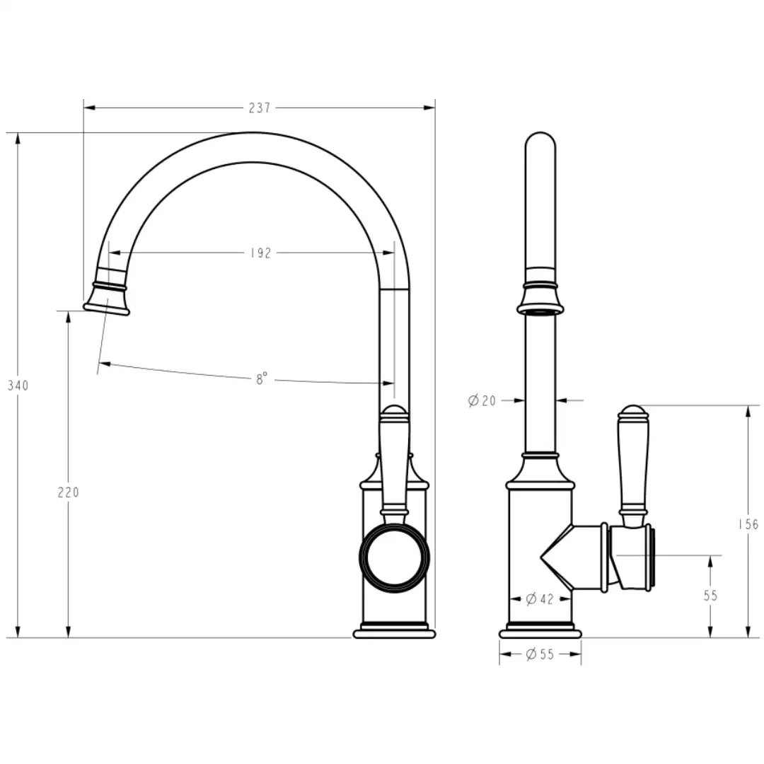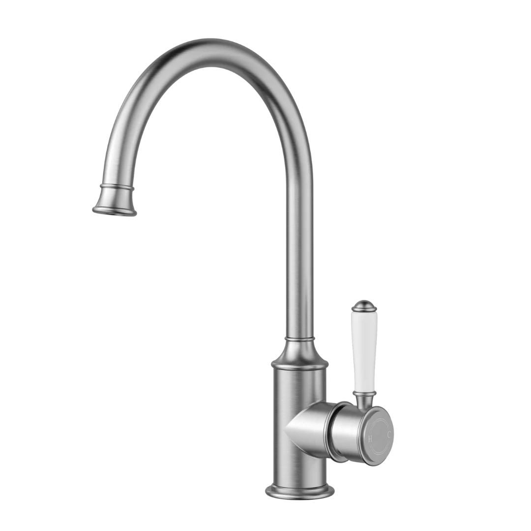 Clasico Gooseneck Sink Mixer | Brushed Nickel Ceramic Handle