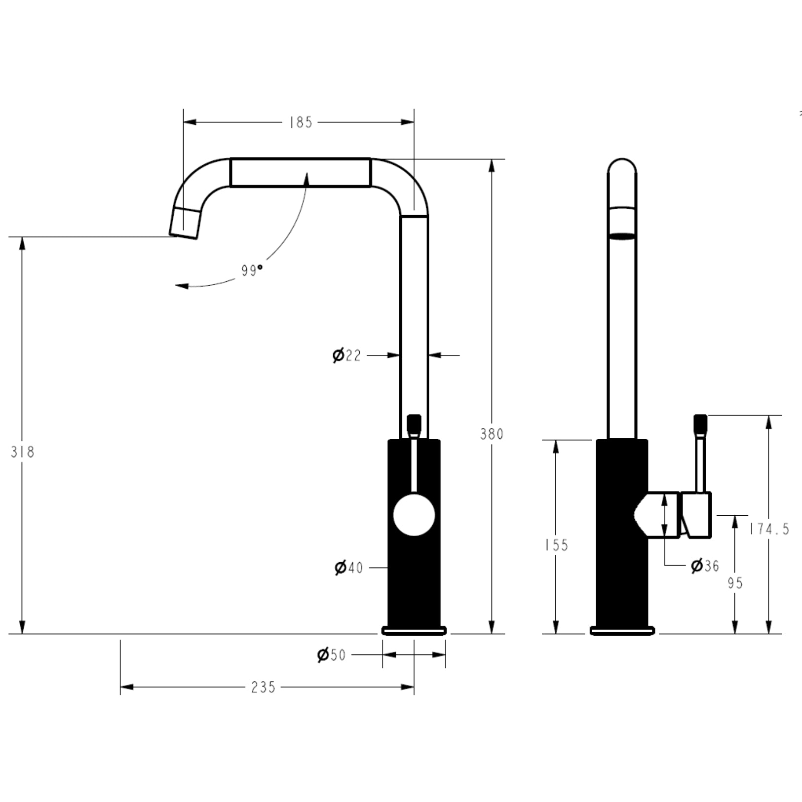 Linie Sink Mixer | Matt Black