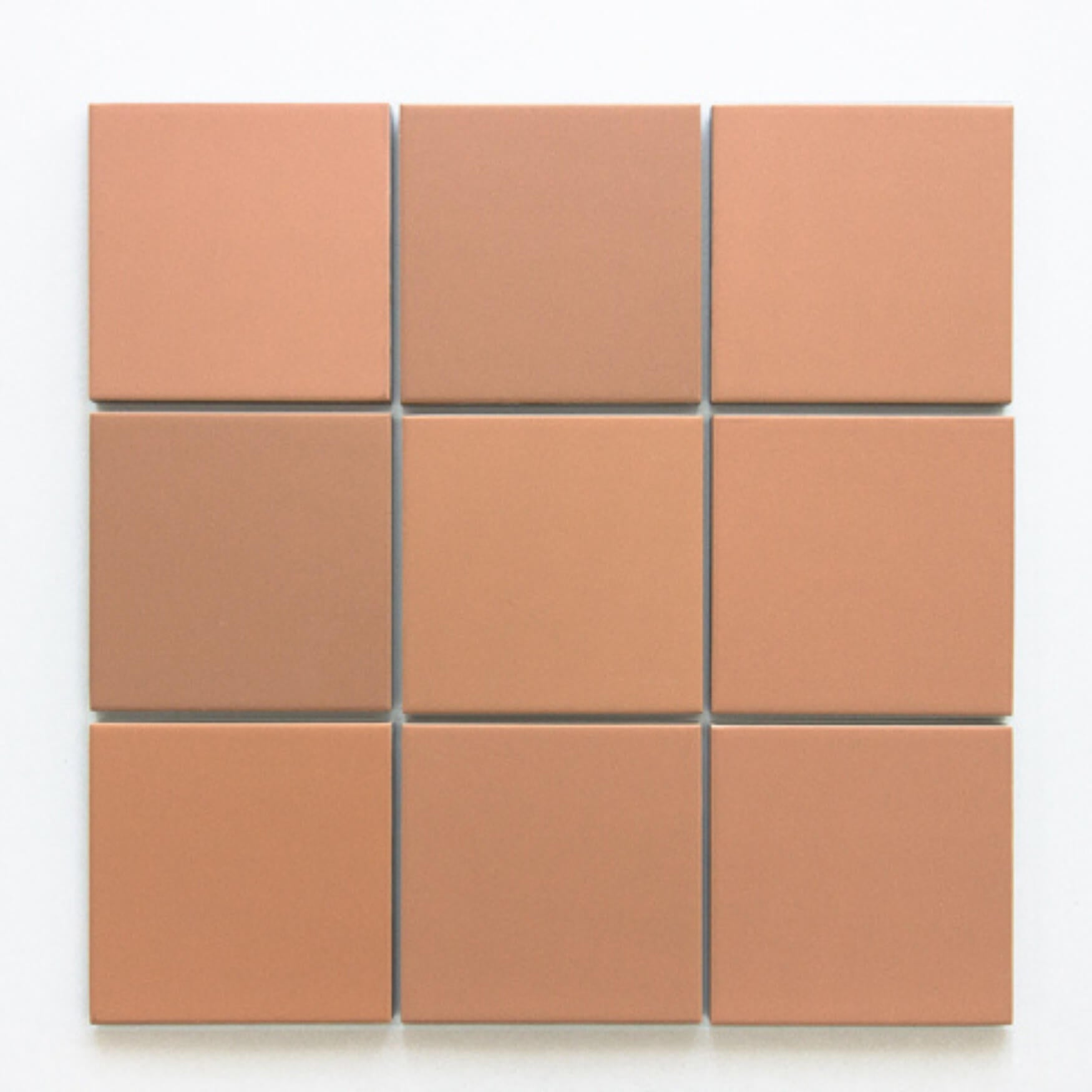 Their subtle tonal variations capture the authentic texture of polished concrete, while the smaller format allows for creative layouts — from uniform grids to bold geometric patterns.