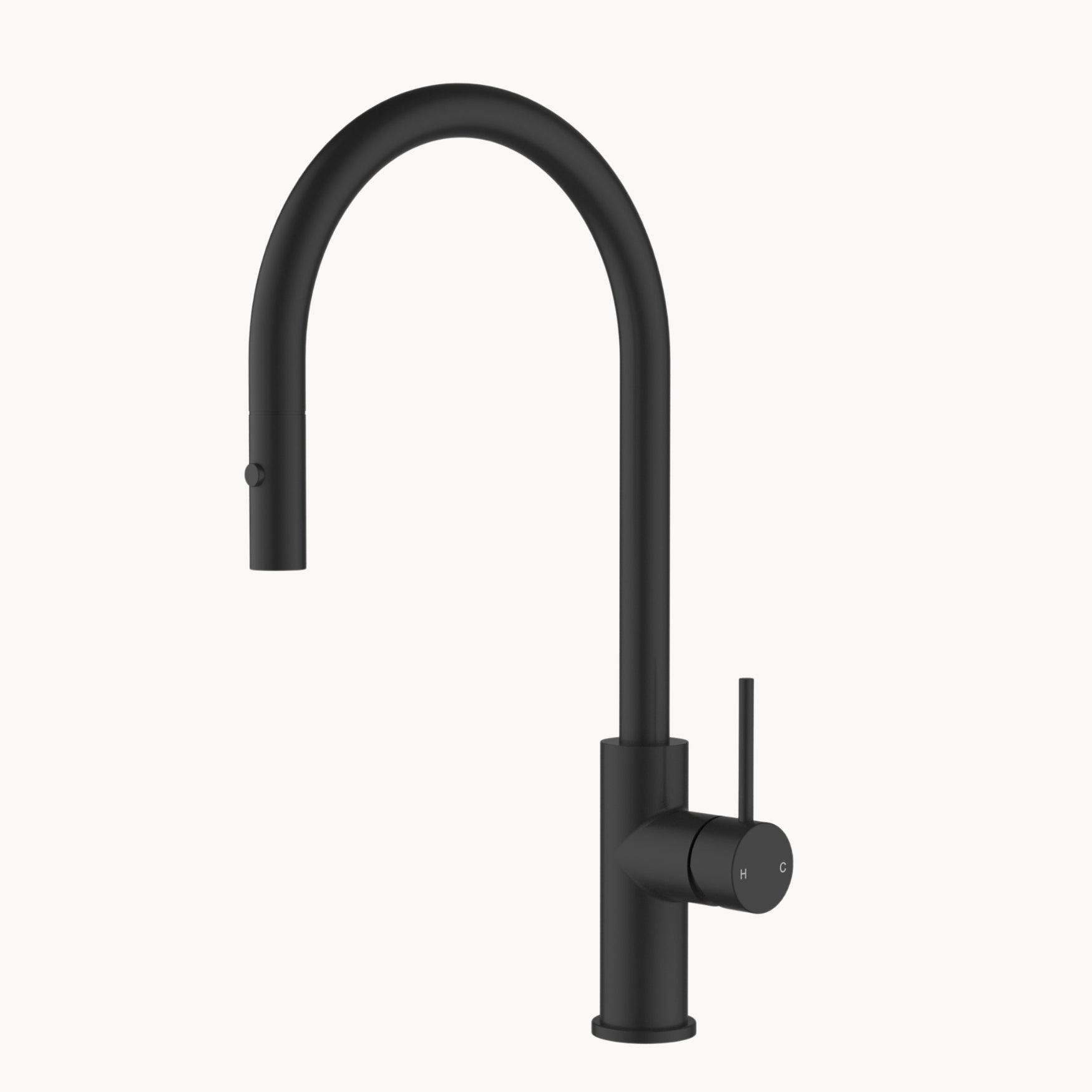 Otus Slimline SS Gooseneck Pull-Out Sink Mixer | Matt Black