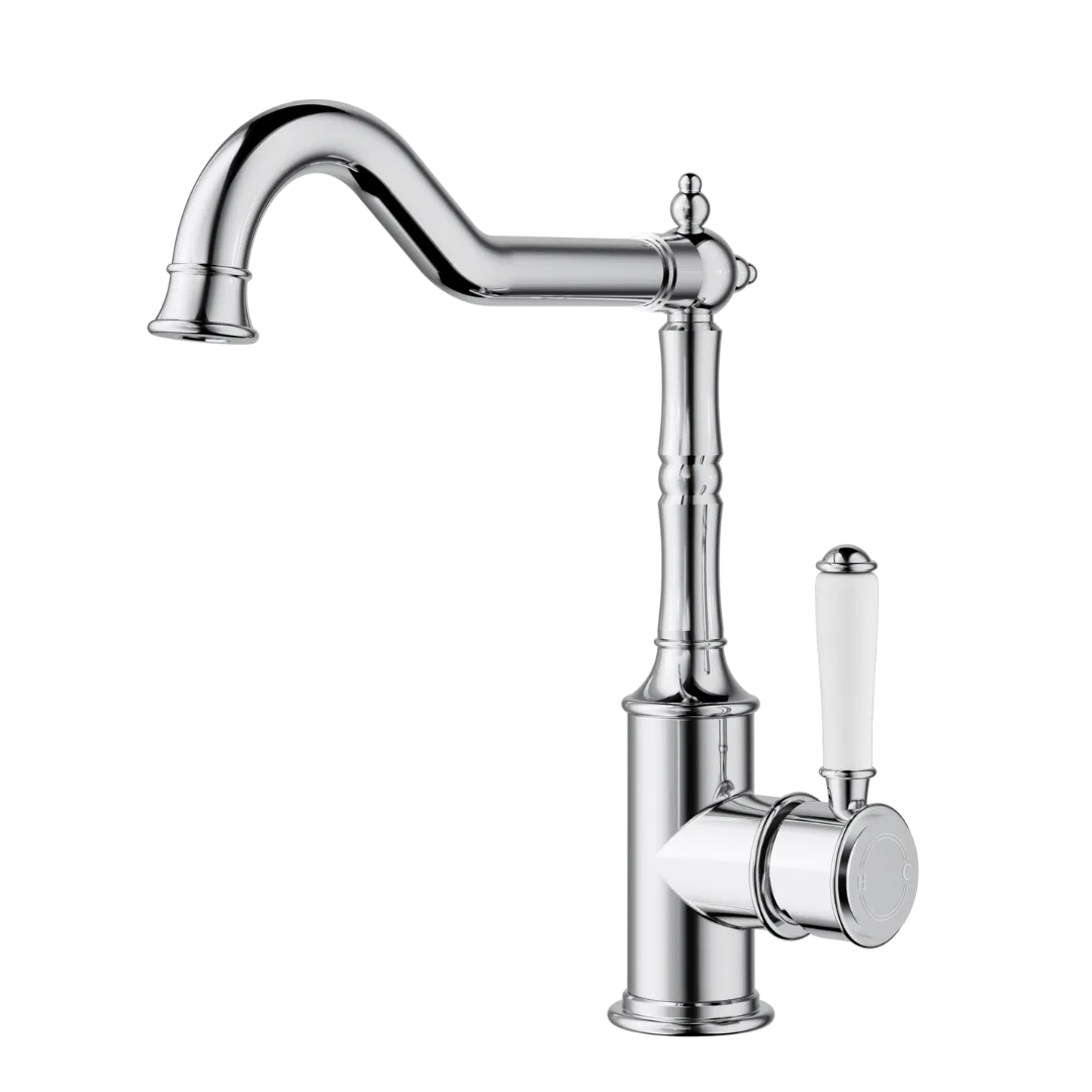 Clasico Tall Hook Spout Basin Mixer | Chrome Ceramic Handle