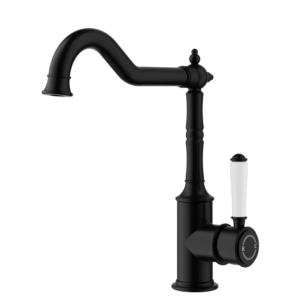 Clasico Hook Spout Sink Mixer | Matt Black Ceramic Handle