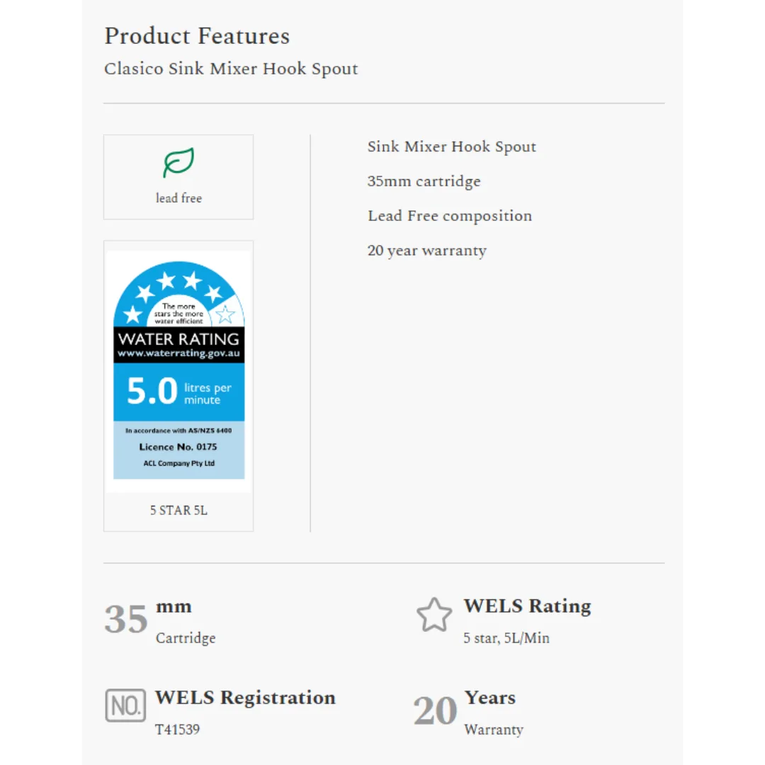 Clasico Hook Spout Sink Mixer | Chrome