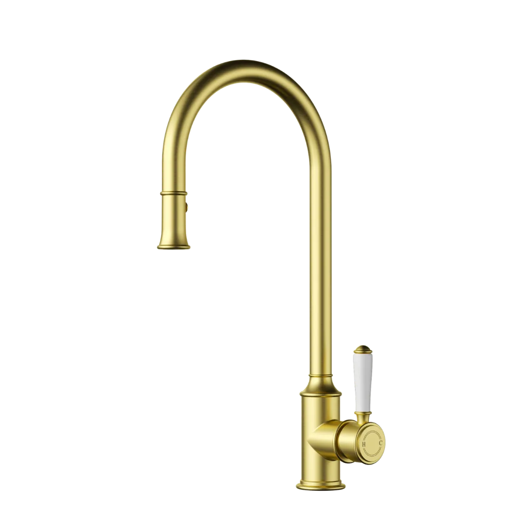 Clasico Pull-Out Sink Mixer | Brushed Gold Ceramic Handle