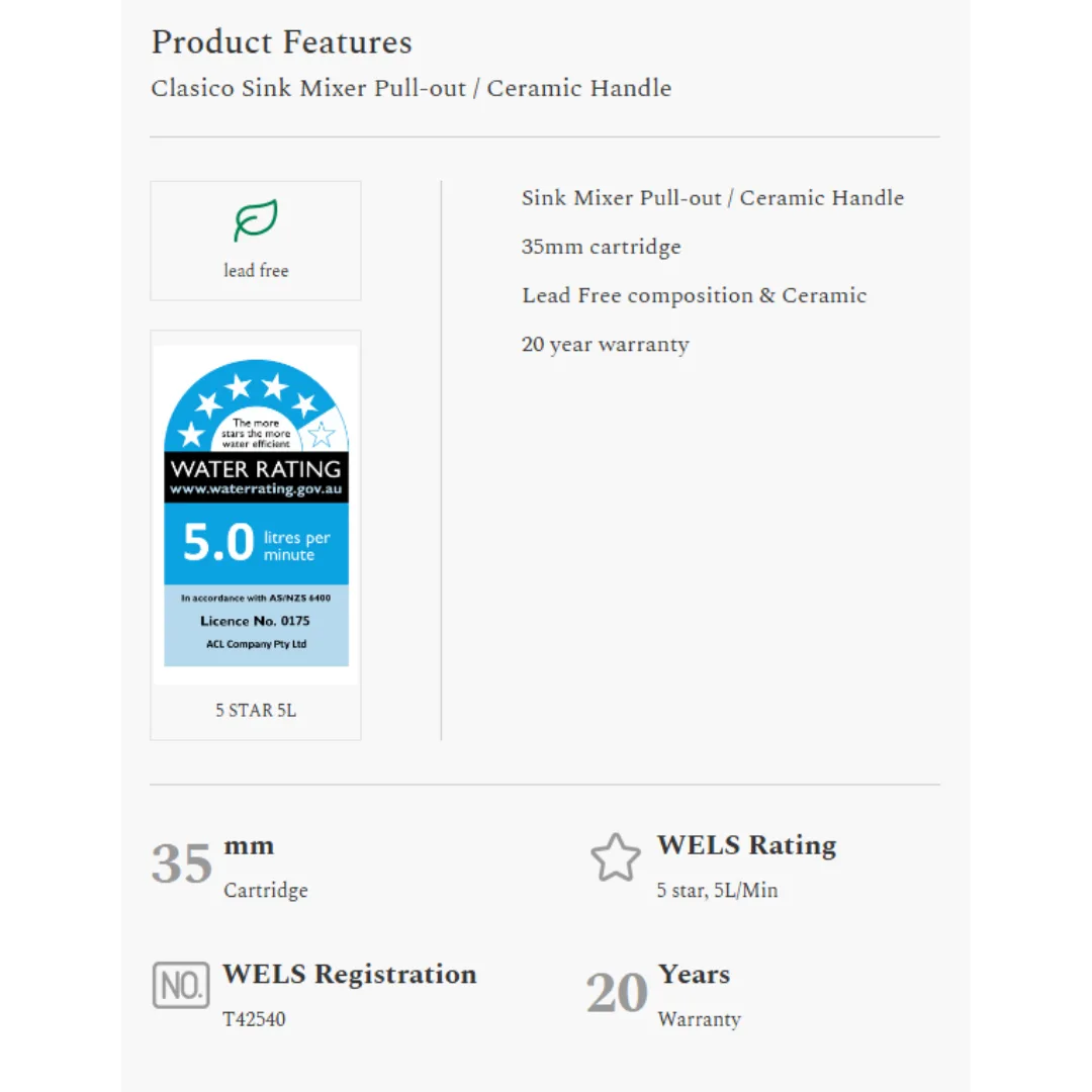 Clasico Pull-Out Sink Mixer | Chrome Ceramic Handle