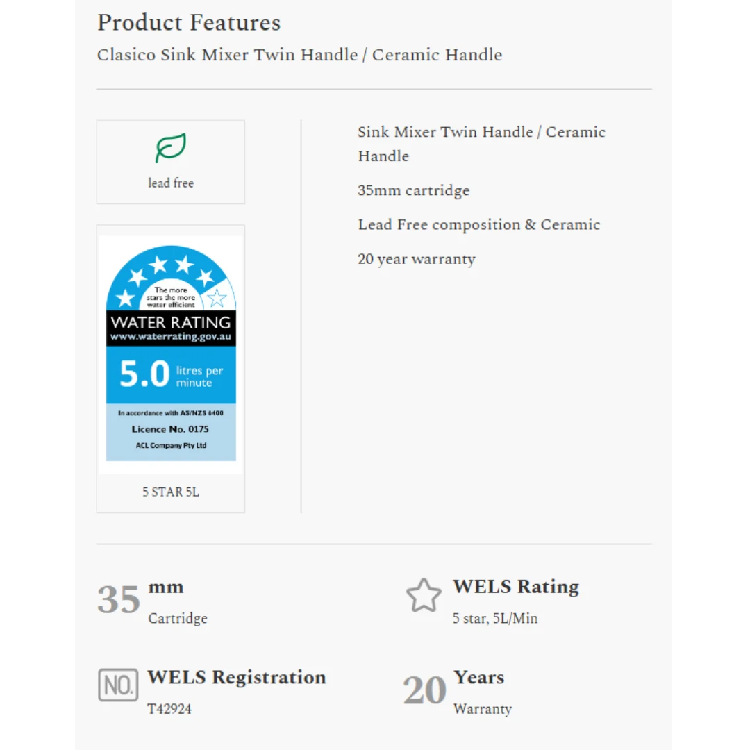 Clasico Sink Mixer Twin Handle | Chrome Ceramic Handle