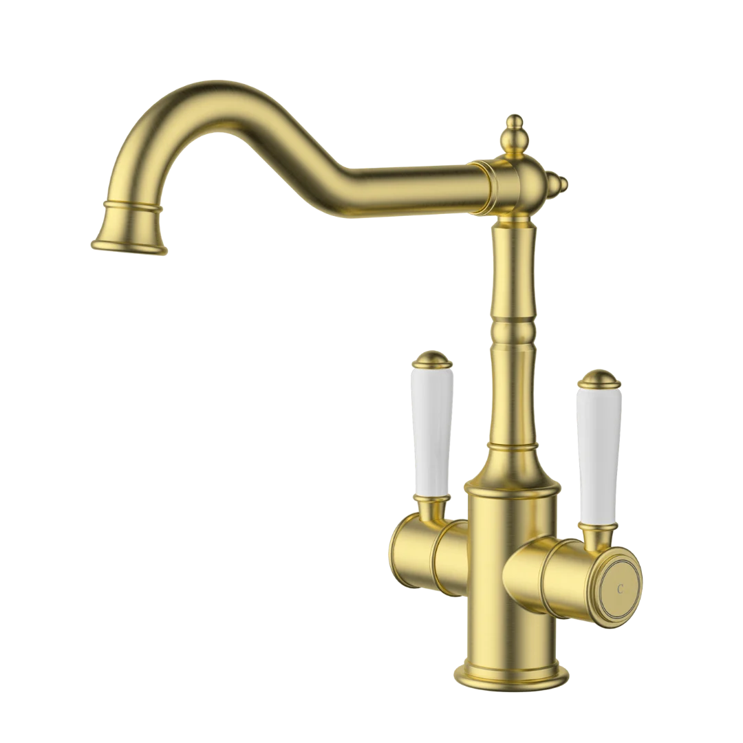 Clasico Sink Mixer Twin Handle | Brushed Gold Ceramic Handle