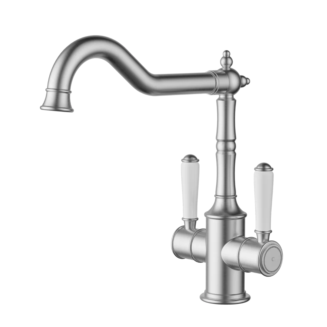 Clasico Sink Mixer Twin Handle | Brushed Nickel Ceramic Handle