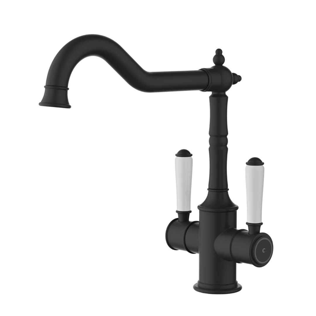 Clasico Sink Mixer Twin Handle | Matt Black Ceramic Handle