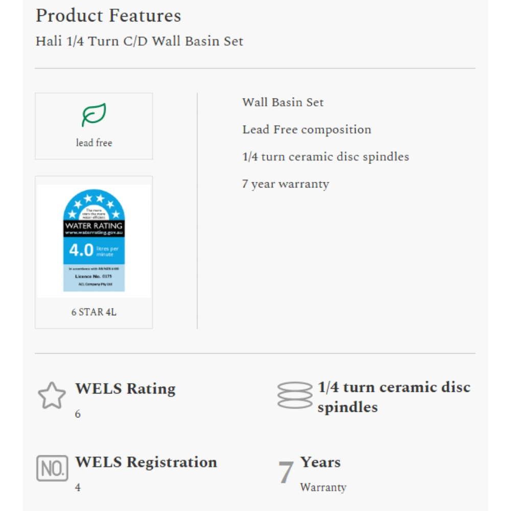 Hali 1/4 Turn C/D Wall Basin Set | Chrome