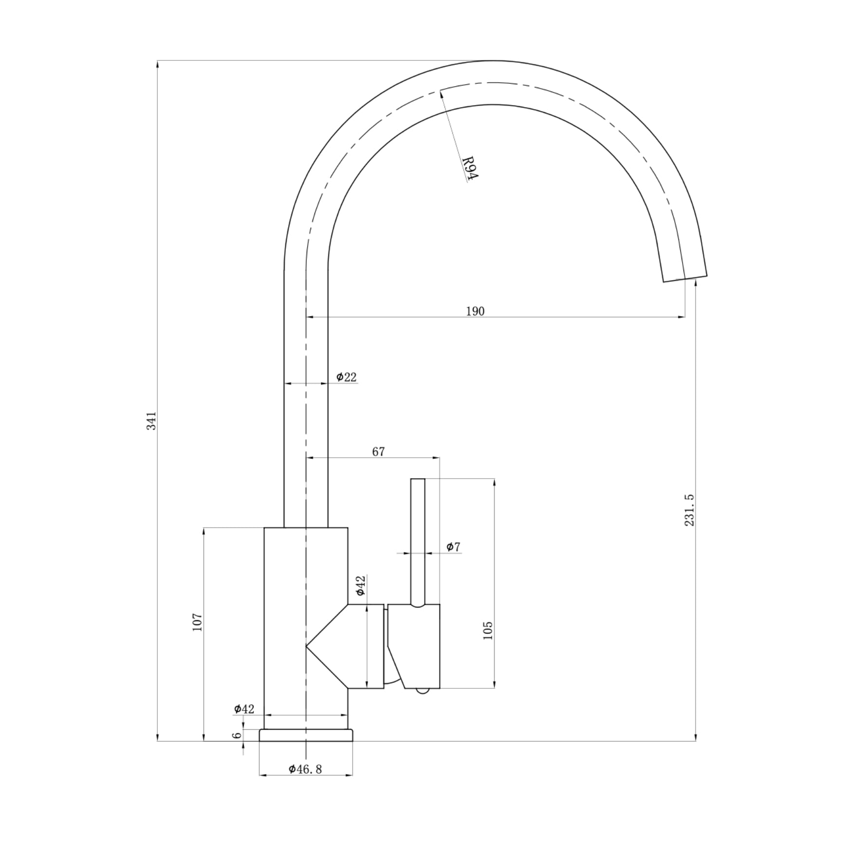 Otus Slimline SS Gooseneck Pull-Out Sink Mixer | Stainless Steel