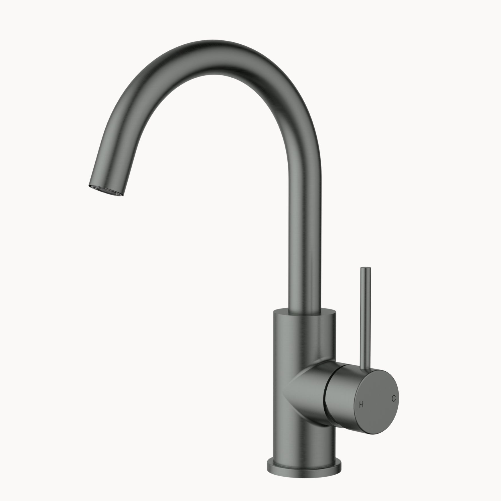 Otus Slimline Basin Mixer High Rise Curved Spout | Gun Metal