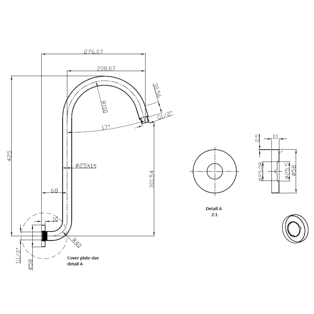 Clasico Shower Arm High Rise | Chrome