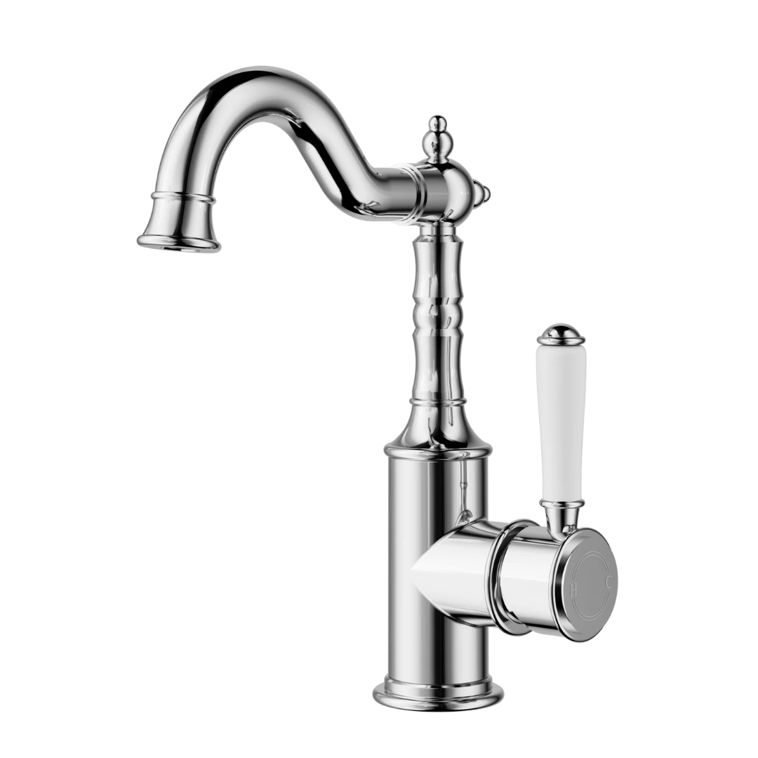 Clasico Tall Hook Spout Basin Mixer | Chrome Ceramic Handle