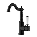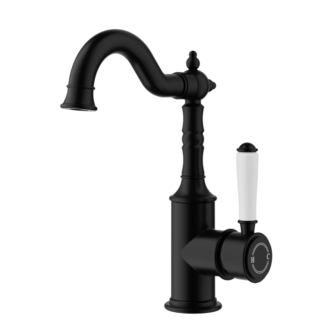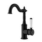 Clasico Tall Hook Spout Basin Mixer | Matt Black Ceramic Handle