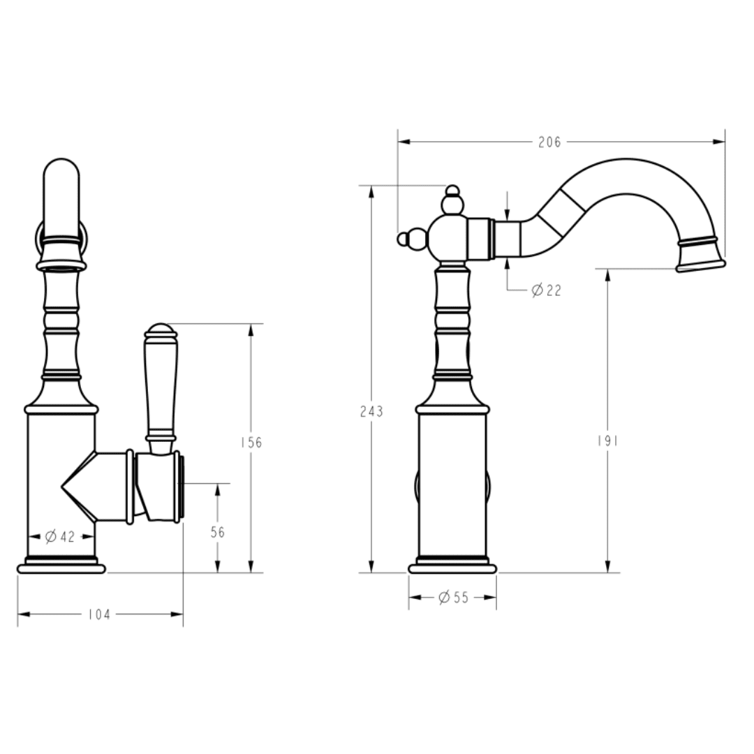 Clasico Tall Hook Spout Basin Mixer | Chrome Ceramic Handle