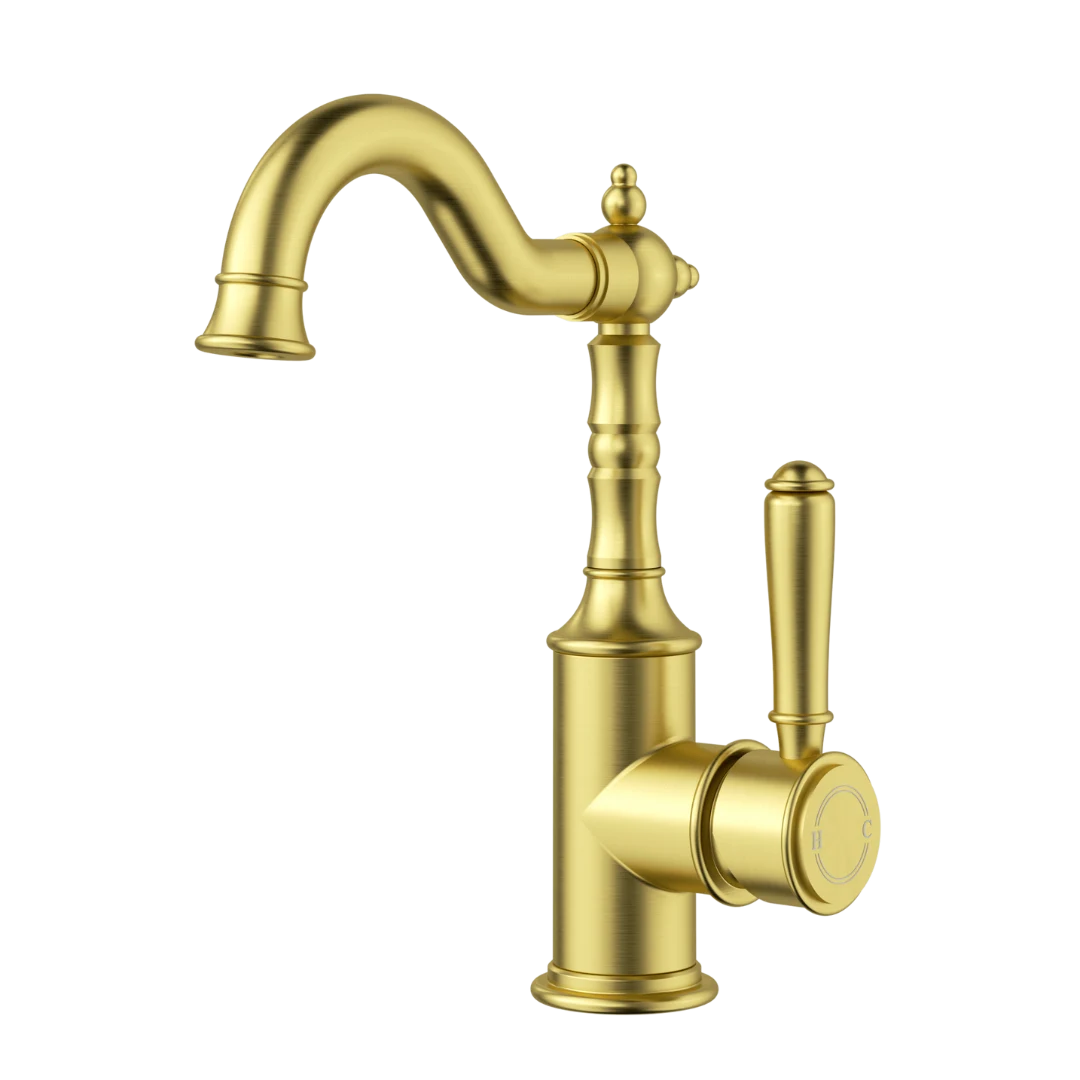 Clasico Tall Hook Spout Basin Mixer | Brushed Gold