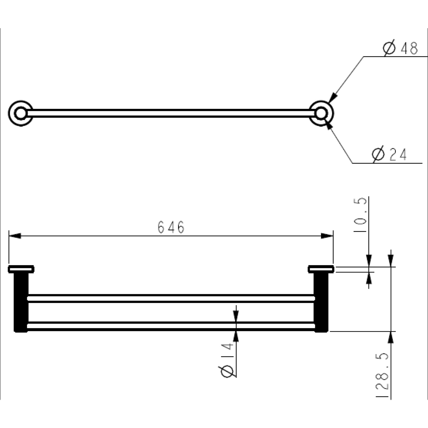 Linie Double Towel Rail 600 mm | Brushed Gold