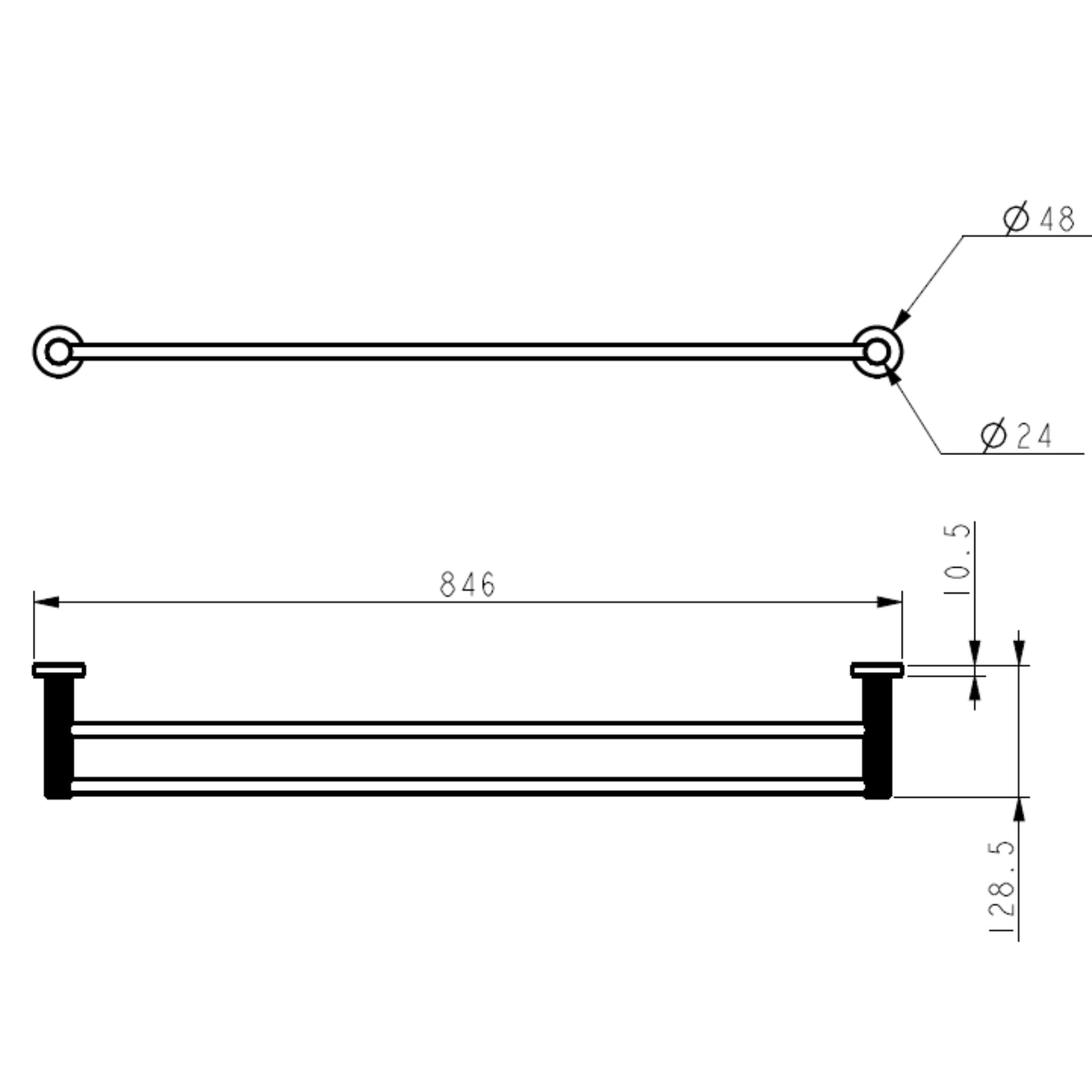 Linie Double Towel Rail 800 mm | Brushed Gold
