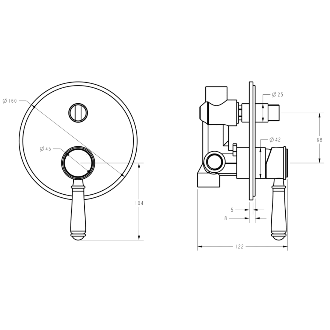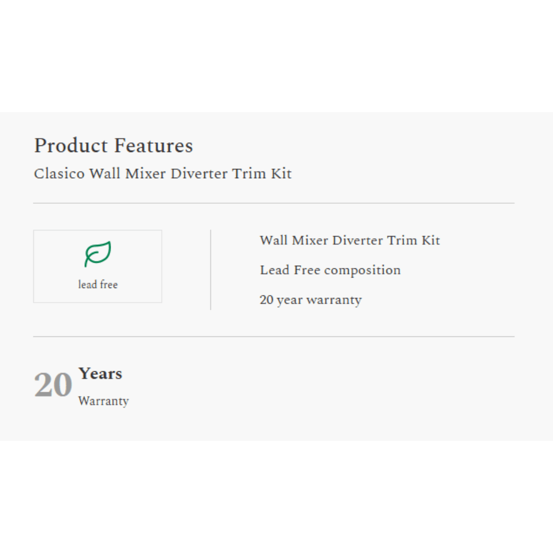 Clasico Wall Mixer Diverter Trim Kit | Brushed Gold Ceramic Handle