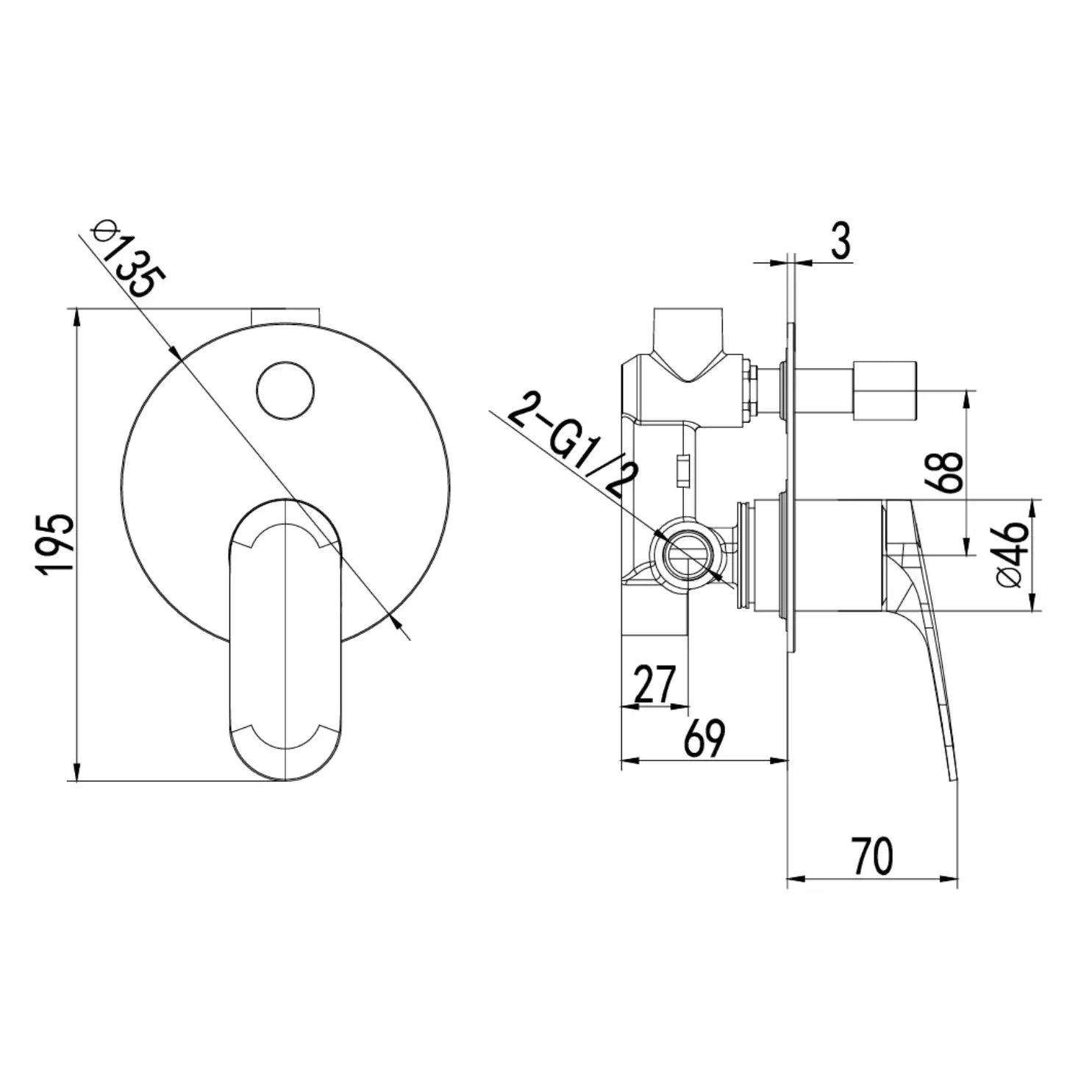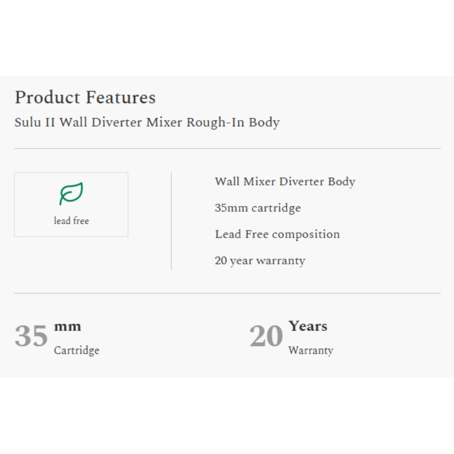 Sulu II Wall Diverter Mixer Rough-In Body | Chrome